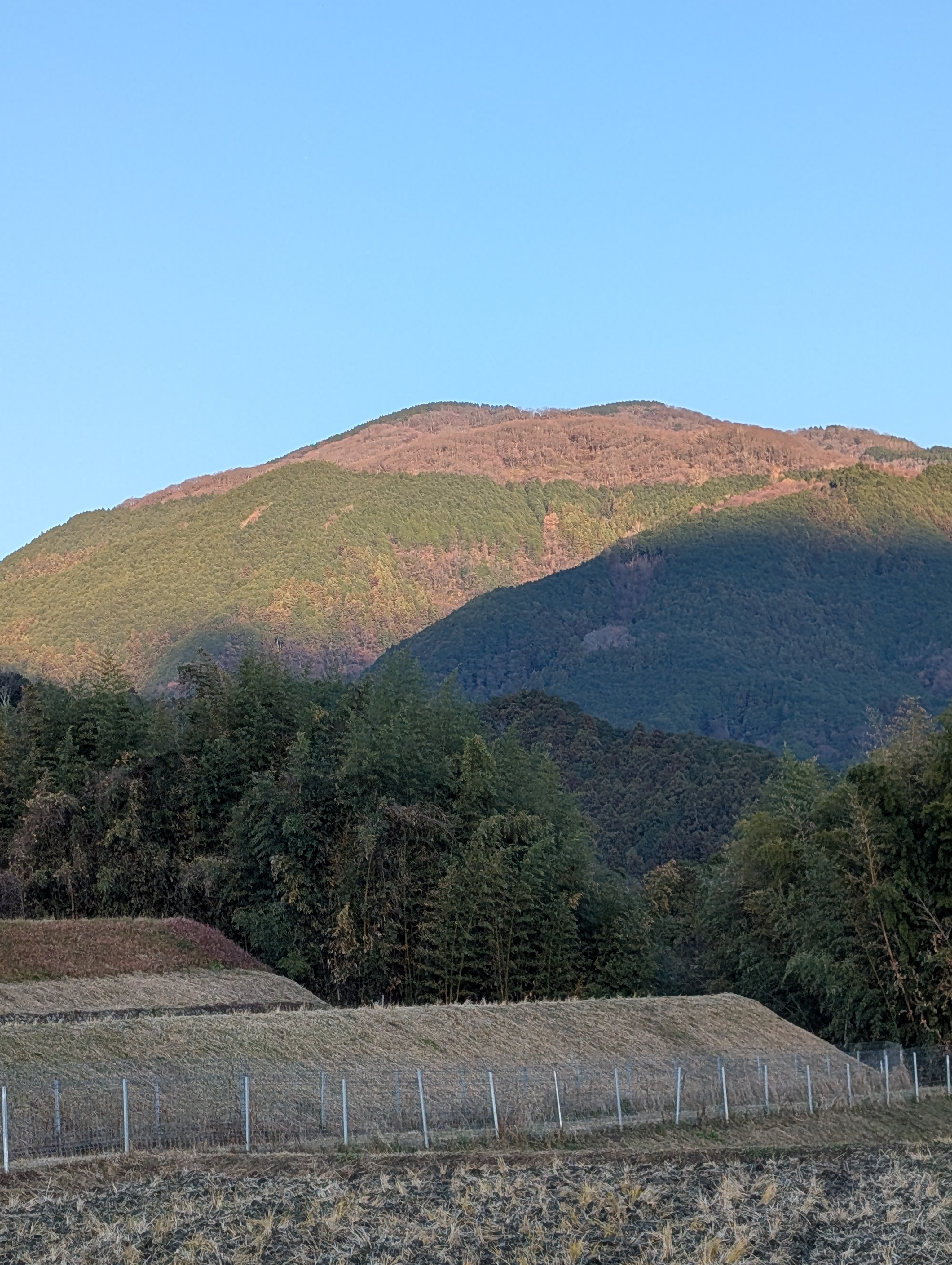 朝日に映える葛城山
